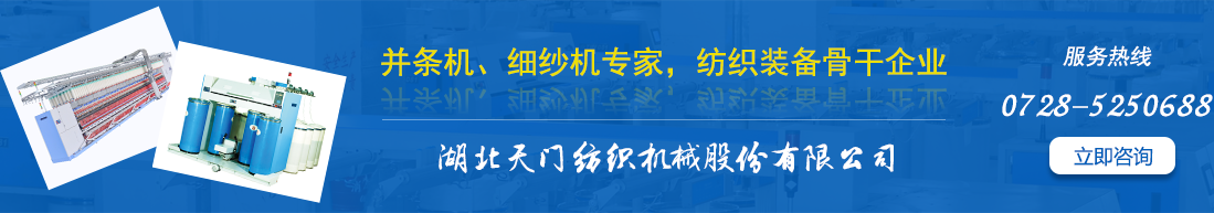 湖北天門紡織機械股份有限公司發軔于1954年,自上世紀80年代初被原紡織工業部指定為棉紡并條機專業生產廠家,一直專注實業,深耕紡織裝備,底蘊深厚,源遠流長。現為中國紡織機械協會副會長單位、全國紡織機械與附件標準化技術委員會委員單位和棉紡并條機行業標準制定牽頭單位,素有“并條專家”雅號。